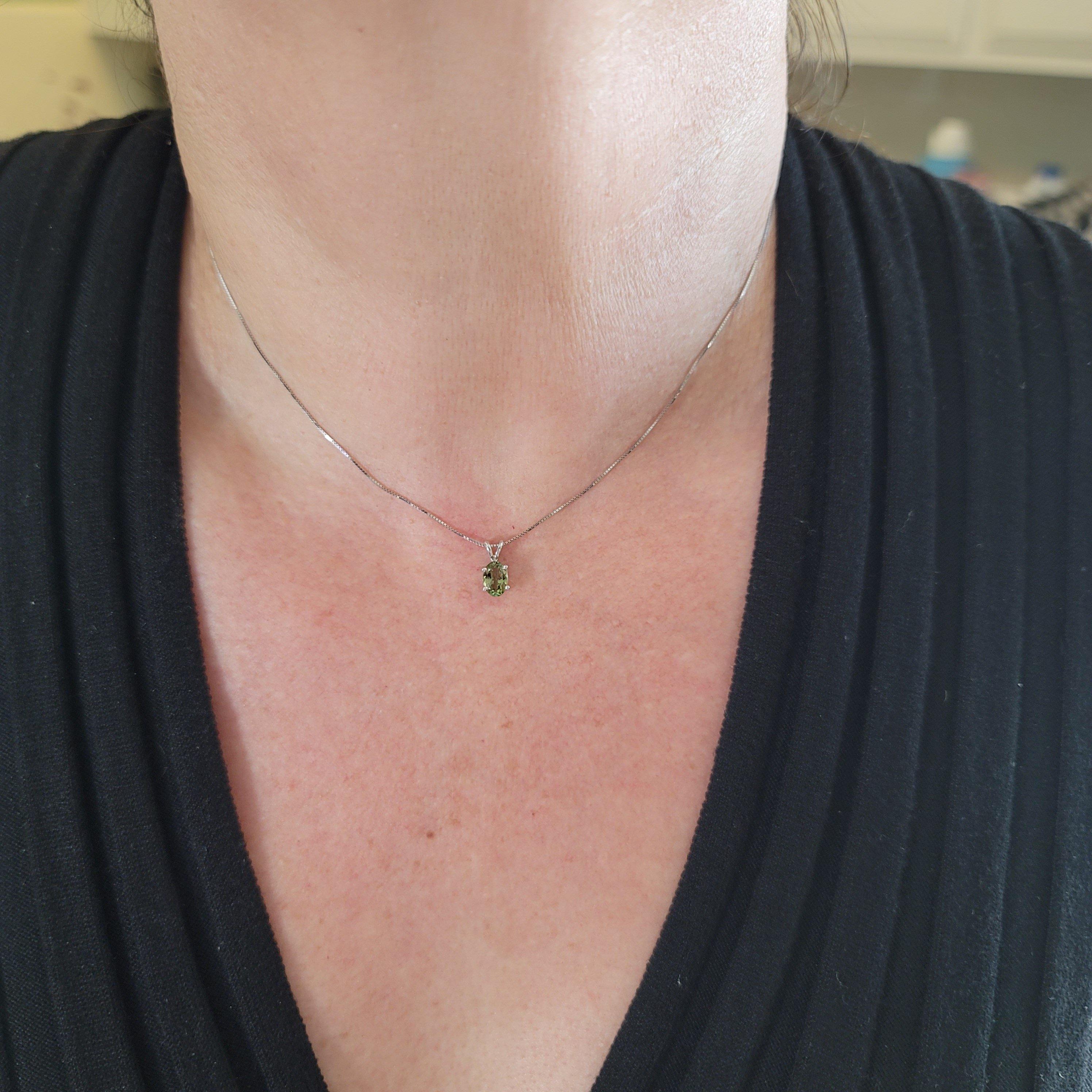 Extremely Rare Green Sapphire Oval Solitaire Necklace in 14K